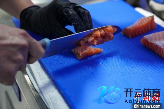 西法烹饪师赛项中,选手正在切配三文鱼。王以照 摄