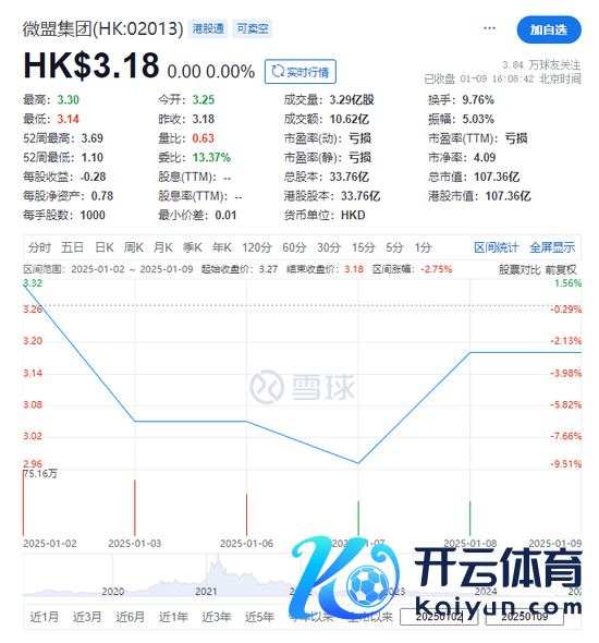 腾讯,分手在1月3日(上周五)、1月6日(本周一)减捏6,210.1万股、1.21919亿股微盟集团,平均作价每股3.49元、3.40元,分手套现2.17亿、4.14亿元,共套现6.31亿元。