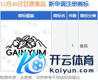 本站音尘,凭据企查查数据显露,近日甘源食物股份有限公司新提交1件商标注册肯求。商标肯求笃定如下: