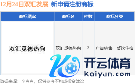 本站音问,把柄企查查数据泄漏,近日河南双汇投资发展股份有限公司新提交“双汇觅德热狗”等2件商标注册肯求。商标肯求确定如下: