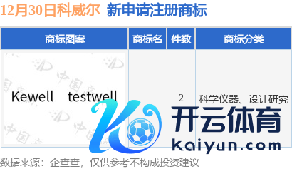 本站音问,凭证企查查数据泄漏开云体育,近日科威尔本领股份有限公司新提交2件商标注册肯求。商标肯求细则如下: