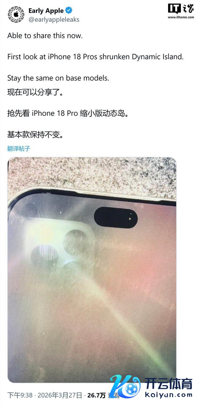16、苹果 iPhone 18 Pro 屏幕盖板曝光,灵动岛挖孔迎来瘦身