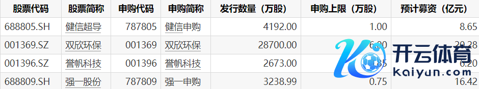 下周将有4只新股刊行开yun体育网,展望共计募资51.56亿元下周将有4只新股刊行,展望共计募资51.56亿元