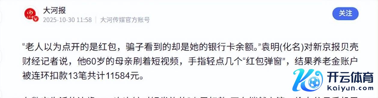 《新京报》就报谈过,一位60岁的老东谈主,在刷手机时轻轻一晃,就跳转进了“看剧领红包”的告白界面,老东谈主还认为是真红包,殊不知阿谁“和顺”按钮其实是“支付”伪装的,老东谈主齐没反馈过来呢,就被东谈主脸识别完成了支付,待业金被鸠合扣了13笔,系数11584块钱。