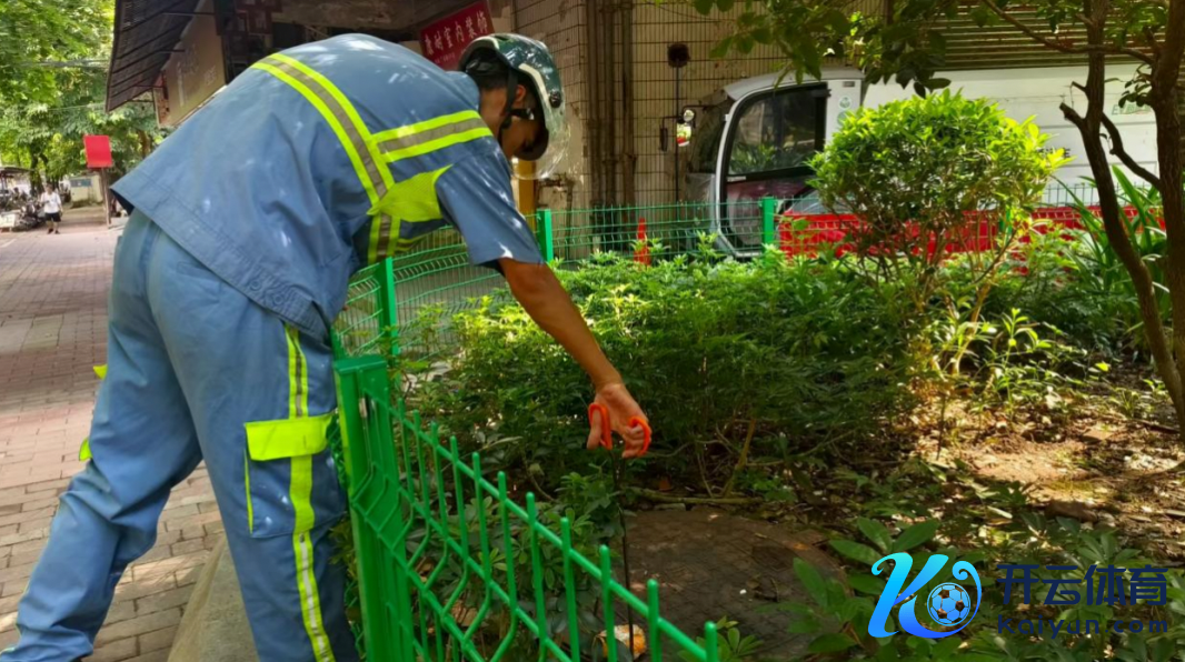 环卫工东谈主清算广雅中学近邻绿化带里的垃圾。