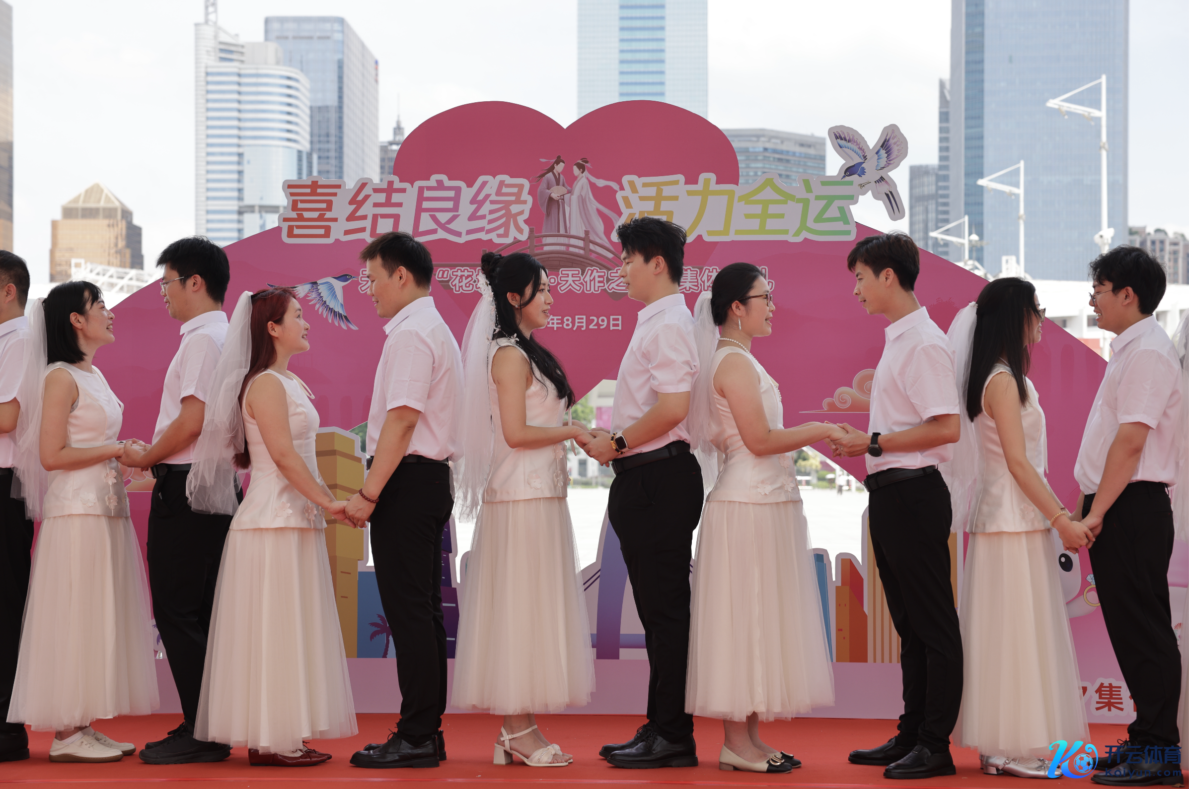 七夕佳节,鹊桥相会,良缘天成,喜迎全运。8月29日,“喜结良缘·活力全运”——河汉区“花城有囍·乱点鸳鸯”集体婚典在广州河汉体育中心南广场举行。